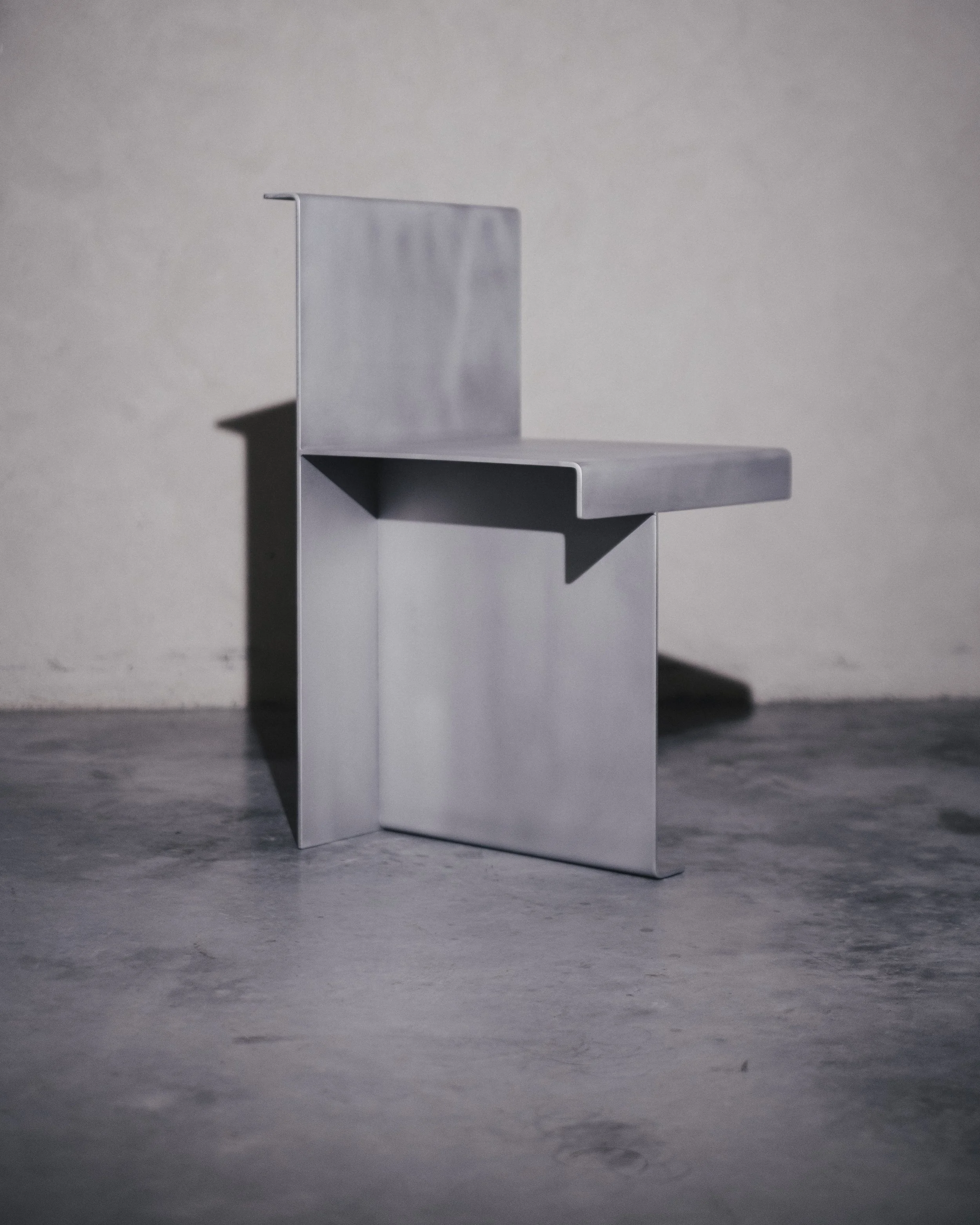 The design is part of a larger design story: this chair communicates with the legs of the Manhattan Console.Crafted in aluminum, the design explores the tension between balance and imbalance, strength and softness. It is a study in controlled imperfection: a deliberate search for asymmetry, for the moment just before something tips over, but doesn’t.